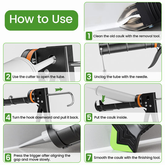 Professional Caulk Gun Kit with Caulk Remover Tool & Putty Knife - 5 in 1 Caulking Tool Set for Caulking Removal, Shower & Bathroom Caulk, Includes Caulking Gun Tool, Caulk Scraper Tool Spackle Knife