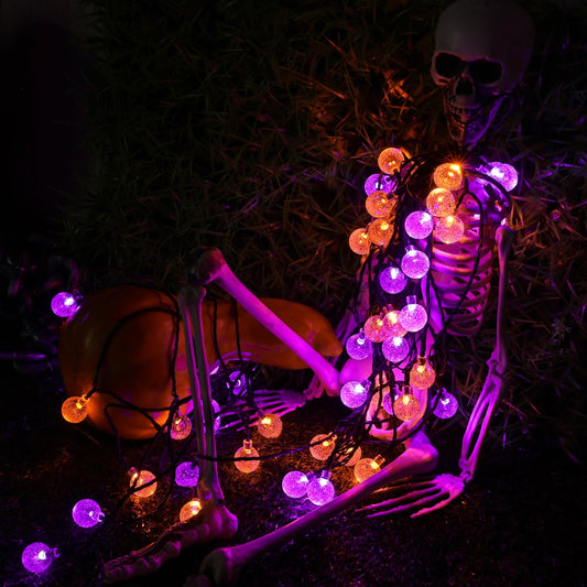 Lomotech Halloween Solar Lights - 72FT 100 LED Orange Purple String Lights Outdoor, 8 Modes Waterproof Crystal Globe Lights for Halloween Decoration
