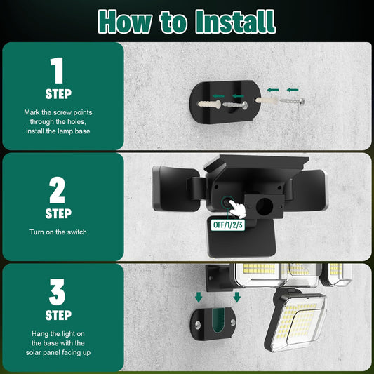Mokot 3000LM 288 LED 4 Heads Solar Lights Outdoor Waterproof IP65, Motion Sensor Outdoor Lights with 3 Modes 270° Wide Angle Flood Lights, Security Lights for Yard, Porch, Patio(2 Packs)