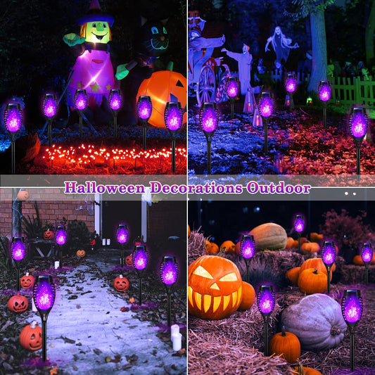 Purple Solar Halloween Lights for Halloween Decorations Outdoor, Solar Torch Lights Flickering Flame for Yard Decorations Outdoor, Waterproof LED Torch Light for Garden Pathway Party Outside Decor