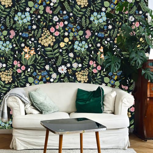 Peel and Stick Wallpaper for Home Decoration Kitchen Midnight Floral Assortment Wallpaper Removable Vinyl Self Adhesive Shelf Paper & Drawer Liner Roll House, Workshop & Office 17.3" x 118" SM-079-3