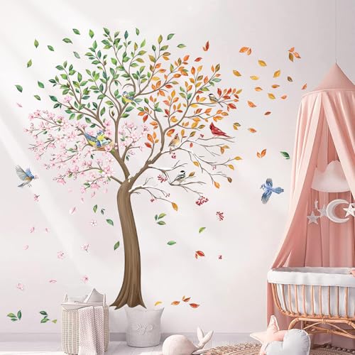 Colorful Flower Tree Wall Stickers, Removable DIY Romantic Cherry Blossom Tree Wall Murals Peel and Stick 3D Wall Art Stickers Home Decor for Girls Bedroom Nursery Rooms Living Room