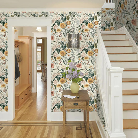 Livebor Vintage Floral Peel and Stick Wallpaper Floral Contact Paper 16.9"x118.1" Boho Neutral Wallpaper Peel and Stick Self Adhesive Wall Paper for Cabinets Bathroom Covering Wall Decorative Vinyl