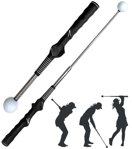 LUCKYOPERA Retractable Golf Swing Training Aid, Golf Grip Trainer with Rhythm Click Sound, Strength and Tempo Trainer for Chipping and Full Swings (Red)
