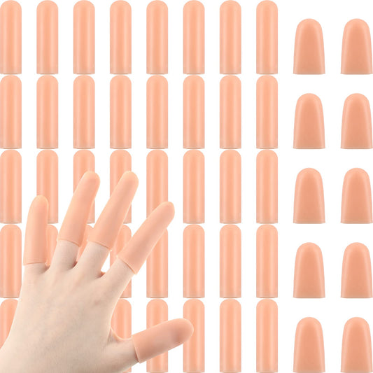 Nuanchu 50 Pcs Gel Finger Cots Silicone Finger Protectors Support Gel Cover Sleeves Gloves Caps, 40 Pieces Long, 10 Pieces Short(Beige)