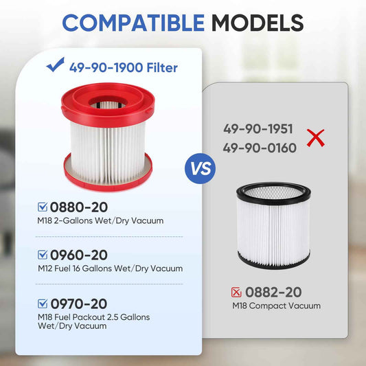 LBLVBNEWD 2 Pack 49-90-1900 Wet Dry Vacuum Filter Compatible With Milwaukee Cordless M18 Vacuum 0780-20 0880-20, with 4 Foam Sleeve Filters & 1 Brush