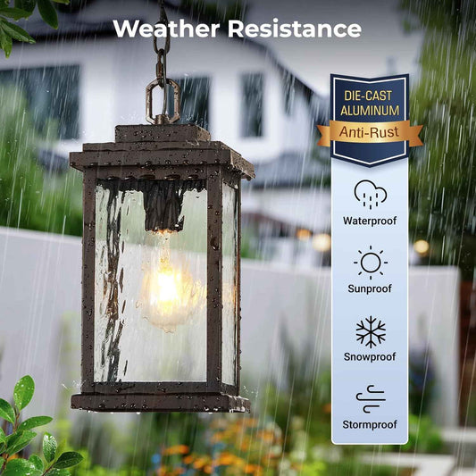 Outdoor Pendant Light - Oil Rubbed Bronze Chandelier for Porch & Patio, Adjustable Chain