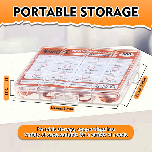 330 Pcs Copper Washers Assortment Kit – 12 Sizes Flat Sealing Crush Washers (M5-M20) for Automotive, Plumbing, and Mechanical Use