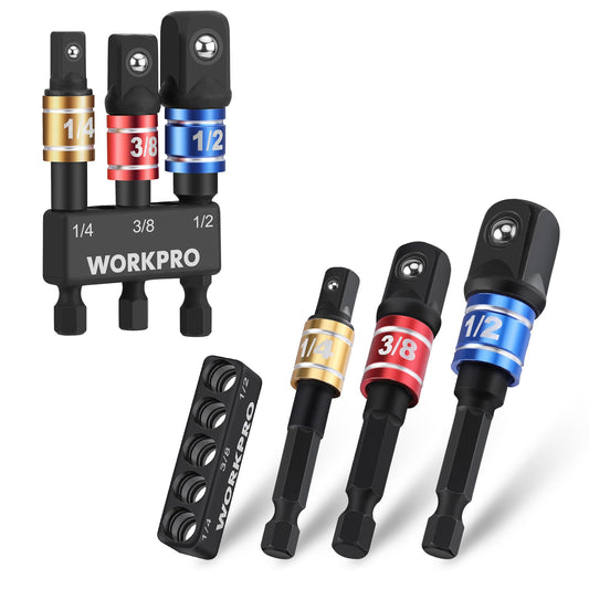 WORKPRO Impact Grade Socket Adapter Set, 1/4", 3/8", & 1/2" Drive, Extension Driver Bit With Holder, for Power Drill to High Torque Impact Wrench, 6PCS