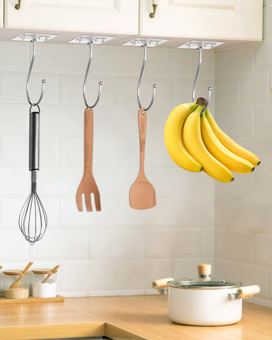 Latoxcaa Banana Hook for Hanging Heavy-Duty 13Ib(Max) 2 Pack, Folding Banana Hanger Under Cabinet, Banana Holder Self Adhesive Traceless Clear for Keep Fresh & Kitchen Space Saving-12 cm