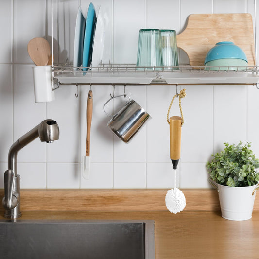 QWORK Whiskey Tasting Glass Brush - 3-Pack Natural Beech Wood Grips Foam Brush Cleaning Brushes
