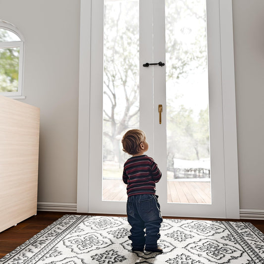 SANKEYTEW 4'' Door Latch Door Lock Hardware, 4'' Stainless steels Hook and Eye Gate Latch Easy Lock for Barn Door, Black Sliding Door Lock with Screws for Window, Cabin Hooks