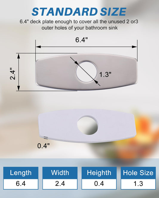 Bathroom Faucet Escutcheons Brushed Nickel: 6 Inch Sink Hole Cover - Non-Leakge Deck Plate For Bathroom Faucet - Solid Faucet Base Plate for 1 or 3 Hole Bathroom Vanity Basin - 4" Faucet Cover Plate