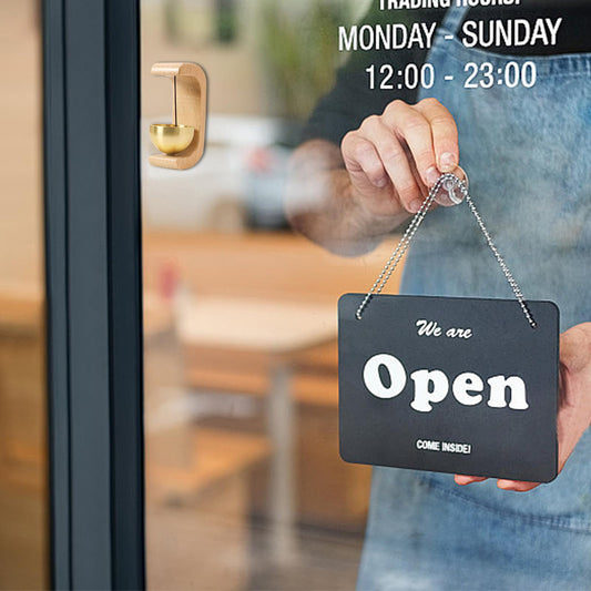Magnetic Shopkeepers Bell, Decorative Wooden Chime with Brass Bell,with Self-Adhesive for Front Porch, Wall, Garden, Shop, Housewarming Gift, C Shape (2, Light)