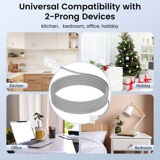 2-Pack 2 Prong Extension Cord 4FT, 90 Degree Plug, SPT-2, Flat Nylon Braided Power Extension Cord with 3 Outlets, Multiple Outlets with Tamper Guard, ETL Listed, Outlet Saver, 16 Gauge Wire, 13A/125V