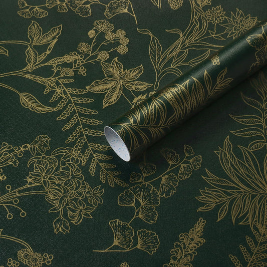 Micpolo Dark Green and Gold Wallpaper Floral Peel and Stick Wallpaper Vintage Flower and Leaf Contact Paper for Cabinets Self-Adhesive Removable Wallpaper for Bedroom Bathroom Kitchen 118"x17.3"