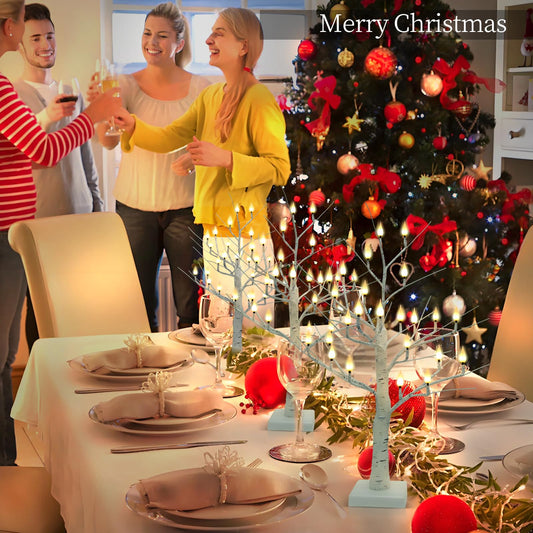 Evicyego 2Ft Lighted Christmas Tree Candles Indoor Decoration, Twinkle Tree with 24LED Flameless Candles Lights, USB/Battery Operated Birch Tree Candles for Home Thanksgiving Christmas Mantel Decor