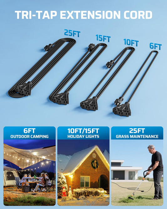 DEWENWILS 6FT Outdoor Extension Cord, Halloween Tri-Tap Extension Cord Splitter, 3 Outlet 16/3 SJTW Power Cable for Landscape Lighting String Lights, 13A/125V/1625W, ETL Listed, Black, 1 Pack