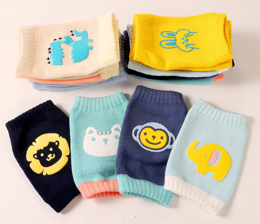 TAMHOO Baby Knee Pads for Crawling 6-24 Months, 8 Pairs with Animal Designs (Monkey/Dinosaur/Pig/Elephant/Cat/Rabbit/), Anti-Slip Silicone Protection,Breathable Toddler Knee Protectors