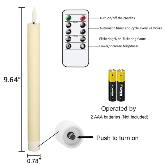 GenSwin Flameless Ivory Taper Candles Flickering with 10-Key Remote, Battery Operated Led Warm 3D Wick Light Window Candles Real Wax Pack of 3, Christmas Home Wedding Decor(0.78 X 9.64 Inch)