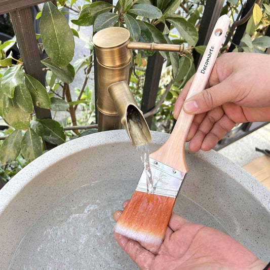 Decomarte Thin Soft Bristle Long-Handled Wood Angled Sash Stain Brush for Painting Doors, Furniture, Wall Trim, House Touch Ups, Enamel Home Decorating Lacquer Paint Brush Pack Assorted