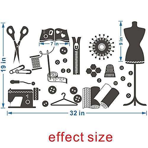 Tailor Studio Wall Sticker - Removable PVC Vinyl Decal with Sewing Tools, Dress Form, Buttons, Scissors, and Thread - Perfect Craft Room or Sewing Shop Decor JWH152 (Black)