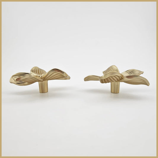 YEMCHI 2 Pack Gold Flower Knobs for Dresser Drawers, 2.36 inch Brushed Gold Cabinet Door Handles, Kitchen Cabinet Pulls for Drawer, Vanity Knobs of Bathroom Decoration Furniture Hardware (2 Flower)