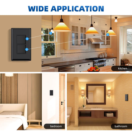 ELEGRP Decorator Double Rocker Light Switch, Two Single Pole Electrical Paddle, 15A 120V, In-Wall On/Off, Self-grounding, With Screwless Wall Plate, UL Listed (1 Pack, Glossy Black)