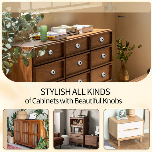 Suiwotin 6pcs White Ceramic Drawer Knobs, Vintage Dresser Knobs with Antique Bronze Point & Base, Decorative Pull Handles for Closet, Cupboard (Small)