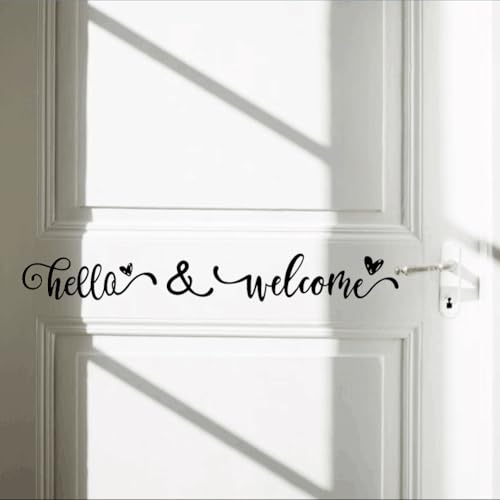PLIGREAT Hello & Welcome Quotes Wall Stickers, Peel and Stick Wall Decals, Removable Vinyl Wall Sticker for Home Office Workplace Front Door Decor Porch Hallway Wall Decorations DIY Wall Art Decor