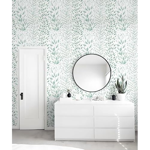 Safiyya Peel and Stick Wallpaper Leaf Contact Paper 78.7" x 17.3" Light Green Wall Paper Modern Self Adhesive Removable Wallpaper for Bedroom Bathroom Vinyl Rolls