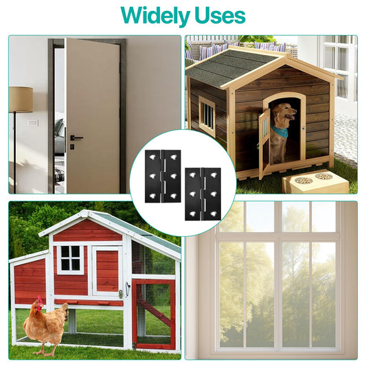 Black Door Hinges, 3 Inch Black Hinges for Furniture Door Window Case Lid and Wooden Box Chest, Pack of 4 with 24 Screws
