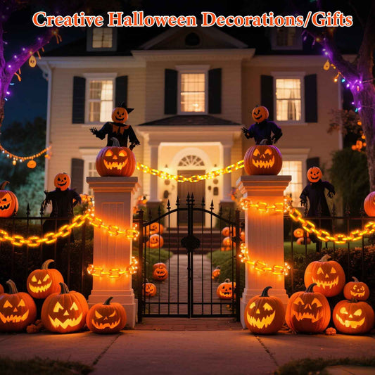 10FT Battery Halloween Chain String Lights, Waterproof Orange Plastic Chain Lights for Halloween Decorations Indoor/Outdoor, 8 Lighting Modes, Led halloween Lights for Skeleton Dog, Lawn Porch Decor