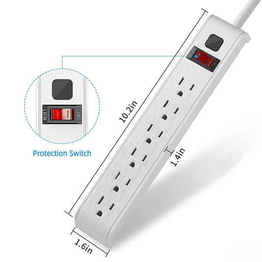 Power Strip Surge Protector, 6 Feet Extension Cord, 600 Joules Surge Protection, Multiple Protection 6 Outlet Strip, ETL Listed, 2 Pack