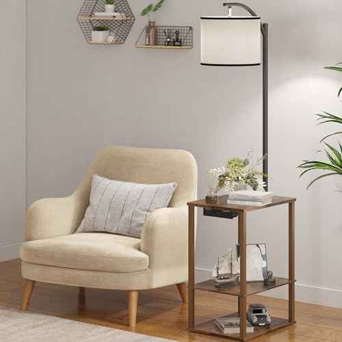 SUNMORY Floor Lamp with Table, End Table for Living Room with Lamp, Shelves Side Table with Charging Station(USB & AC Port), 3 Color Temperature LED Bulb, Modern Nightstand Lamp for Bedroom, Office