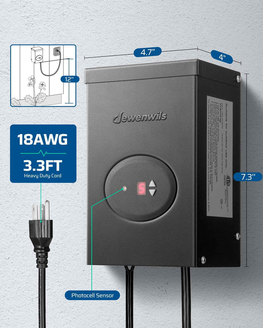 DEWENWILS 120W Low Voltage Landscape Transformer, Outdoor Transformer with Timer and Photocell Sensor, 120V AC to 12V AC, Weatherproof, for LED Lighting, Spotlight, Pathway Light, ETL Listed