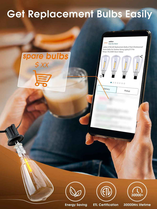 addlon 150 FT (3x50FT) Outdoor String Lights,Waterproof Patio Lights ETL Listed with 45+3 Shatterproof Dimmable ST38 LED Bulbs,2200K Connectable Outdoor Lighting for Backyard Bistro Garden