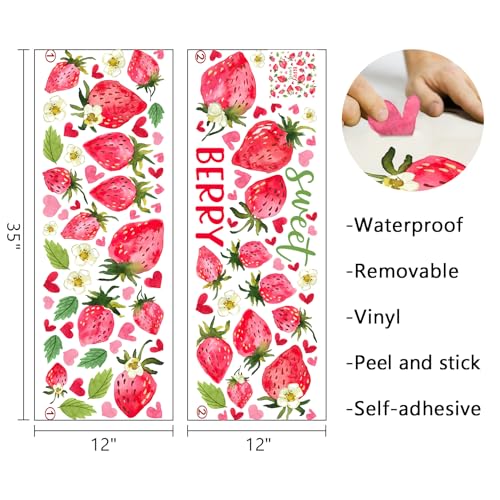 Mfault Spring Summer Strawberry Wall Decals Stickers, Berry Sweet Fruit Love Heart Decorations Girls Bedroom Art, Home Kitchen Kids Room Living Room Bathroom Decor