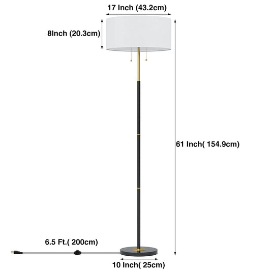 Karjoefar 2-Light Floor Lamp, Mid Century Floor Lamp with White Fabric Shade, Standing Lamp Tall Lamp for Living Room Bedroom, 3 Color Temperatures 9W Bulb Include