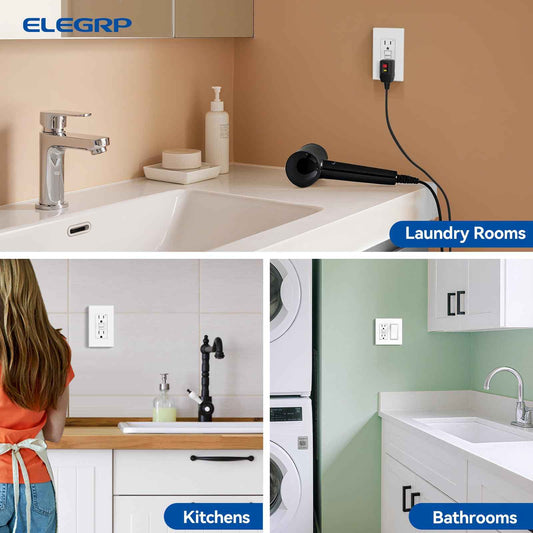 ELEGRP GFCI Outlet 15 Amp, Self-Test GFI Electrical Outlet with Thinner Design, TR Tamper Resistant GFCI Receptacle, Ground Fault Circuit Interrupters with Wall Plate, UL Listed, Matte White, 6 Pack