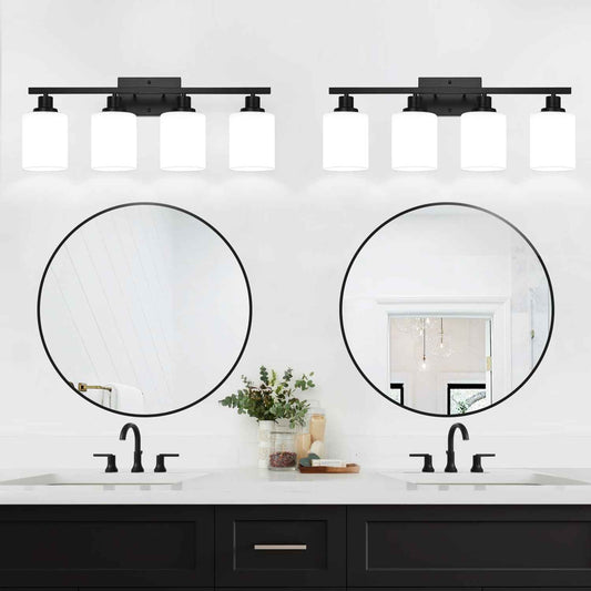 MOKATNG 4-Light Bathroom Light Fixtures, Vanity Light with Milky White Shades, Matte Black Bathroom Light Fixtures Over Mirror, Modern Bathroom Wall Lamp for Mirror Living Room Cabinet Bedroom