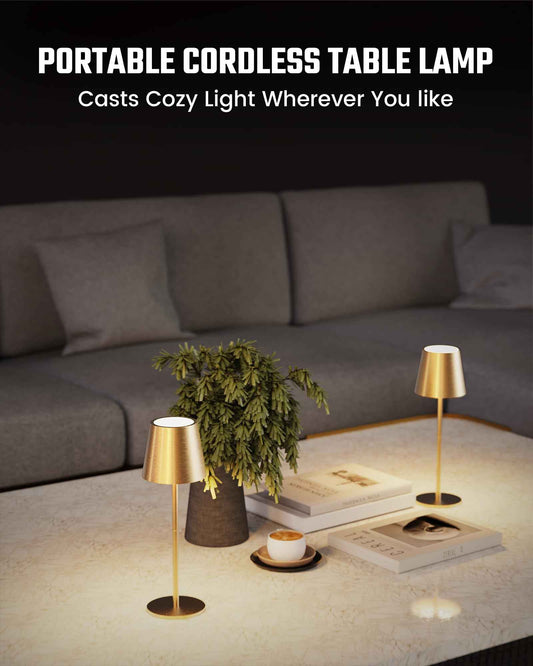 JACKYLED Cordless Table Lamps Rechargeable, 3 Adjustable Height, 5000mAh Battery Operated, 3 Colors Smooth Dimming, Portable LED Waterproof Gold Lamp for Dining, Bedroom, Outdoor (2 Pack)