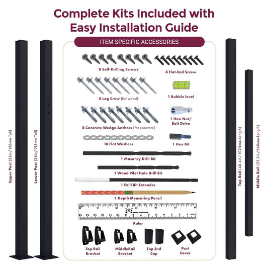 CR Fence & Rail 2-3 Step Stair Handrail, for Indoor & Outdoor Installation, with 40" Top Rail, Perfect for Porch, Deck, and Balcony