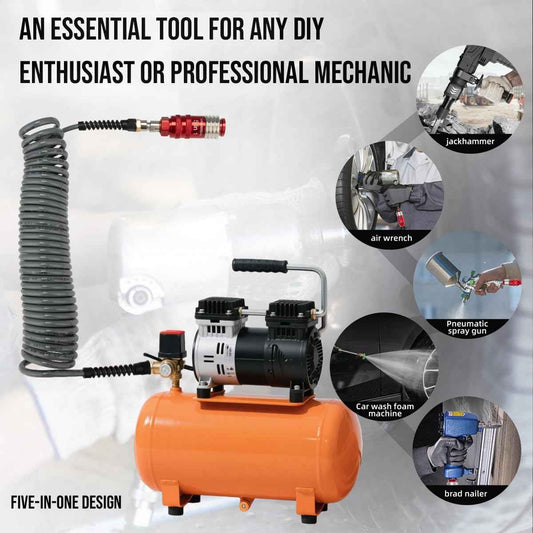 Wangsucc 1/4 In × 25 ft Heavy Duty Polyurethane Recoil Air Hose, Bend Restrictors Compressor Hose with 5 IN 1 Universal Coupler, Lightweight, Coiled PU Air Hose 1/4'', (Gery)