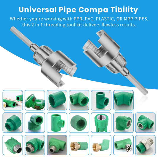 2Pcs Pipe Threading Tool, Integrated Internal & External Pipe Threading Tool, 1/2" and 3/4" PVC Pipe Threader, Electric Drill Compatible Dual-Function 2 in 1 Plastic PVC Pipe Threading Tool, Primary