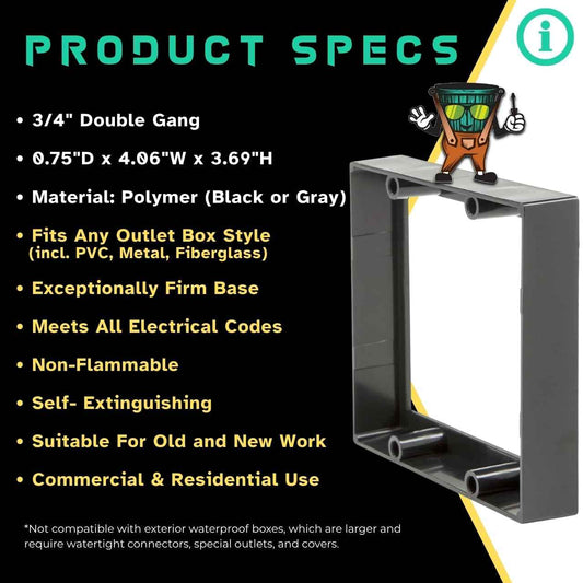 Mint Bucket Brands 3/4" Double Gang Receptacle Outlet Box Extenders, UL Listed - 6-32 x 1.25 Screws, Electrical Outlet Extender for Electrical Box & Electrical Outlet Switches (5 Pack) (Black/Gray)