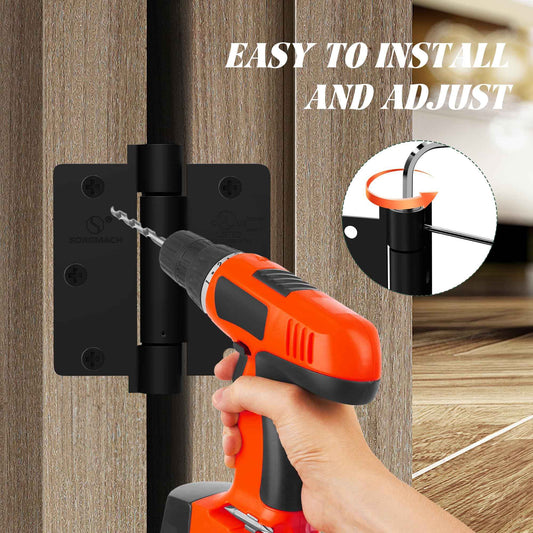 Self Closing Hinge 3.5 Inch Matte Black Auto Close Door Hinges Adjustable 3 1/2 Inch Spring Hinges Door Closer Hinge 1/4" Radius Corner for Commercial Grade Auto Self-Closing UL Listed, 2 Pack