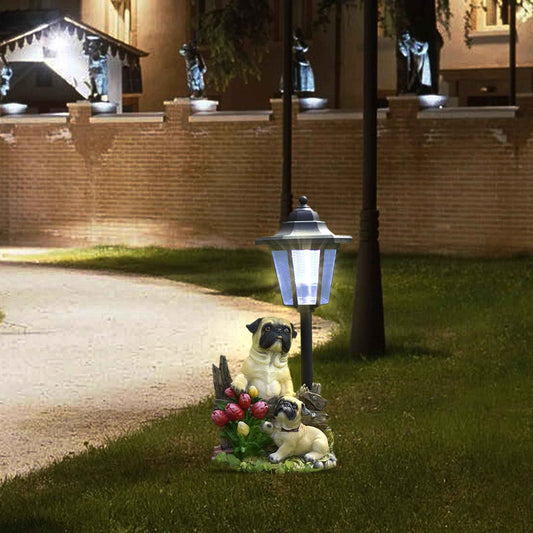 JIALINXIA Solar Garden Country Farm Pug Dogs with Light, Outside-Outdoor Decorations Animal Statue for Patio Yard Lawn Walkway Ornaments Clearance Gifts for Mom Grandma Birthday