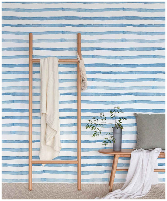 Mfnyzsem Blue Striped Peel and Stick Wallpaper Removable Self-Adhesive Vinyl Waterproof Coastal Contact Paper Roll Vintage Boho Decor for Countertops Living Room Bedroom Cabinets 17.7”x196.8”