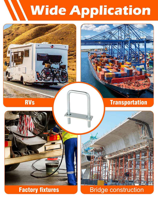ZORUNNA Square U Bolts 4 inch Wide, 3/8" D x 4" W x 5" L Galvanized U-Bolts for Boat Trailer Tube, Rectangular Wood and Metal Objects (6 PCS)